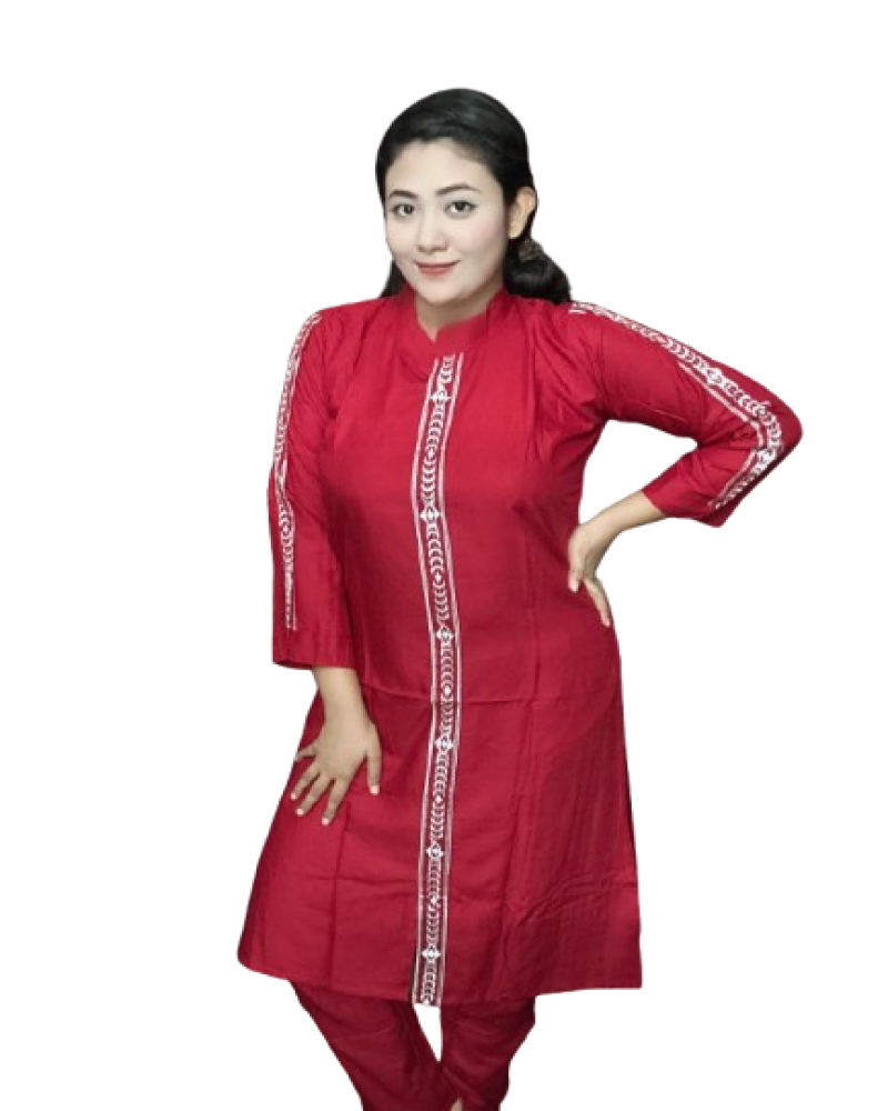 এমব্রয়ডারি ওয়ার্ক।সুতি টু পিস ড্রেস রেড কালার 117